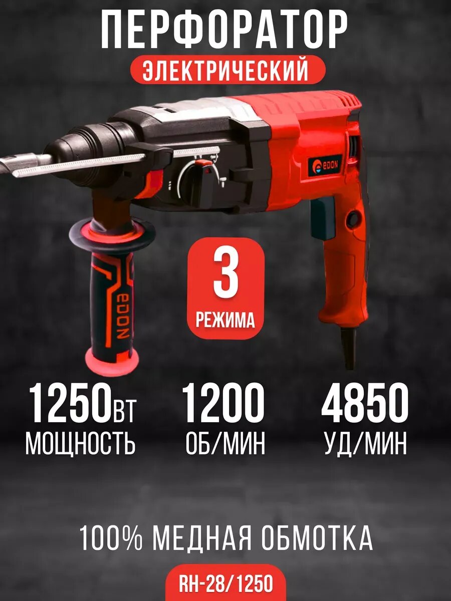 Перфоратор EDON (1250 Вт, 1250 об/мин., RH-28/1250)