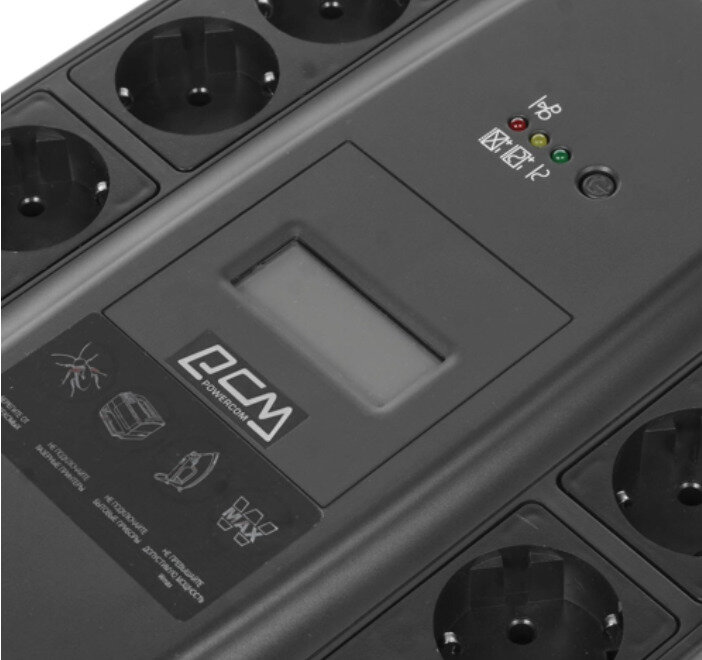 | Плюсы: | - 165-300 Вт диапазон напряжения. - 8 розеток. - крепление на стену. - жк экран. |