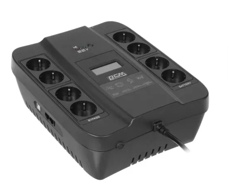 UPS PowerCom Spd-900u LCD USB Line-Interactive, 900VA / 540W, 8xEURO: 4 с резервным питанием, 4 с ф .