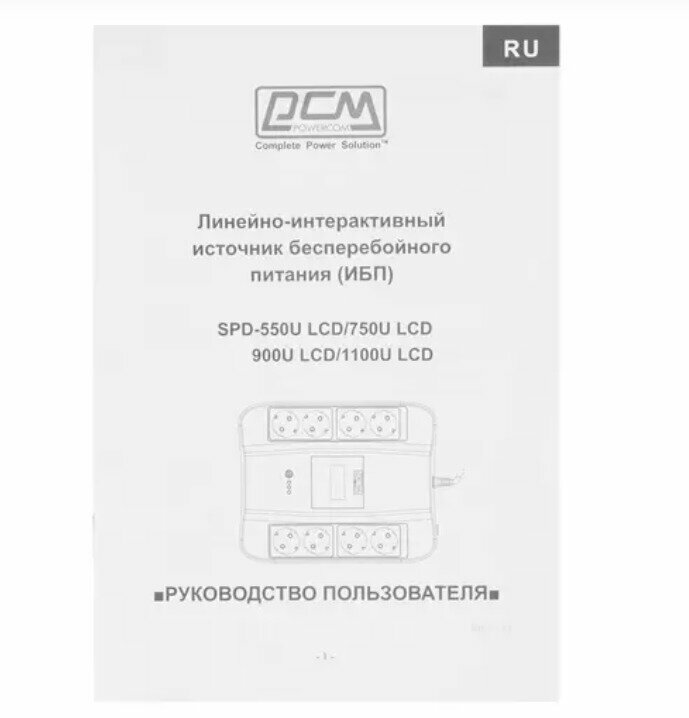 UPS PowerCom Spd-900u LCD Line-Interactive, 900VA / 540W, 8xEURO: 4 с резервным питанием, 4 с фильт .