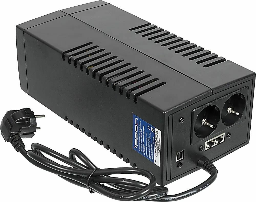 ИБП Ippon Back Power Pro II Euro 650 black (линейно-интерактивный, 650VA, 360W, 2xEURO, USB-B, USB-A, RJ45) (1005511)