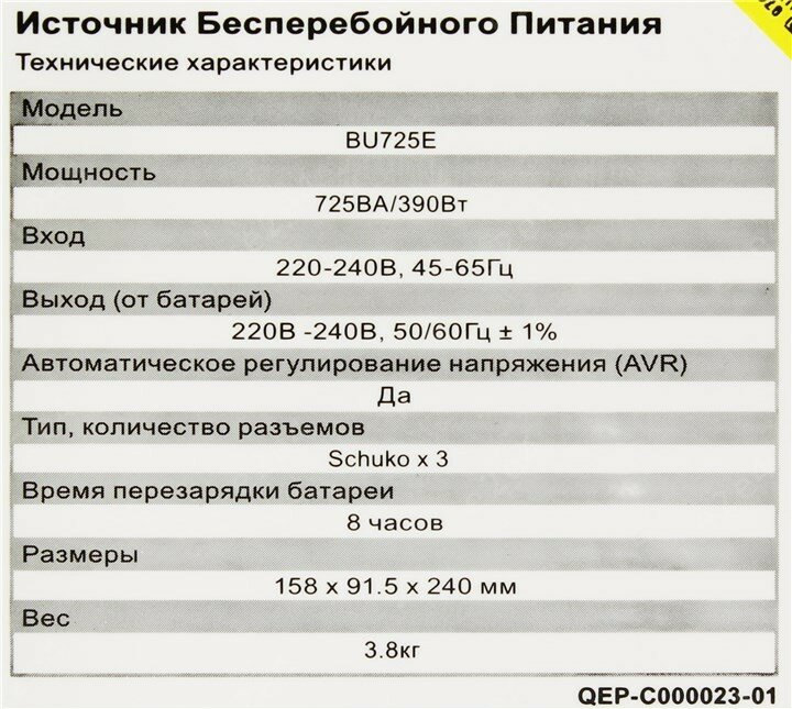 | Отзыв: | Владел им 5 дней. Из за высокочастотного писка его приходилось выключать и отключать от розетки, иначе спать не давал. Подключал к нему только телевизор и PS4 Pro. На пятый день произошло первое выключение электричества, ну и отключилось все, что к нему было подключено. Был слышен щелчек переключения и писк информирующий об этом, но видимо там пауза перехода слишком большая. Хорошо, что прошло меньше 7 дней, успел вернуть. Инструкция там одна на 3 модели из общей линейки BU, так что вероятно другие модели, имеют те же недостатки. |