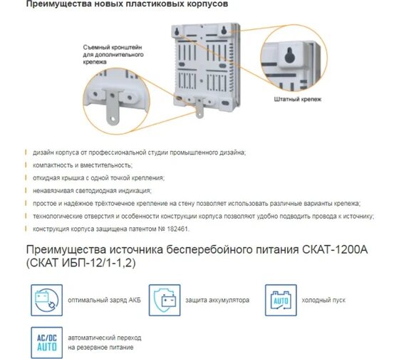 Скат-1200а источник питания, 12В, 1А, корпус пластик под АКБ 1х1,2Ач СС ТР ПБ Skat-1200a Skat-1200a .