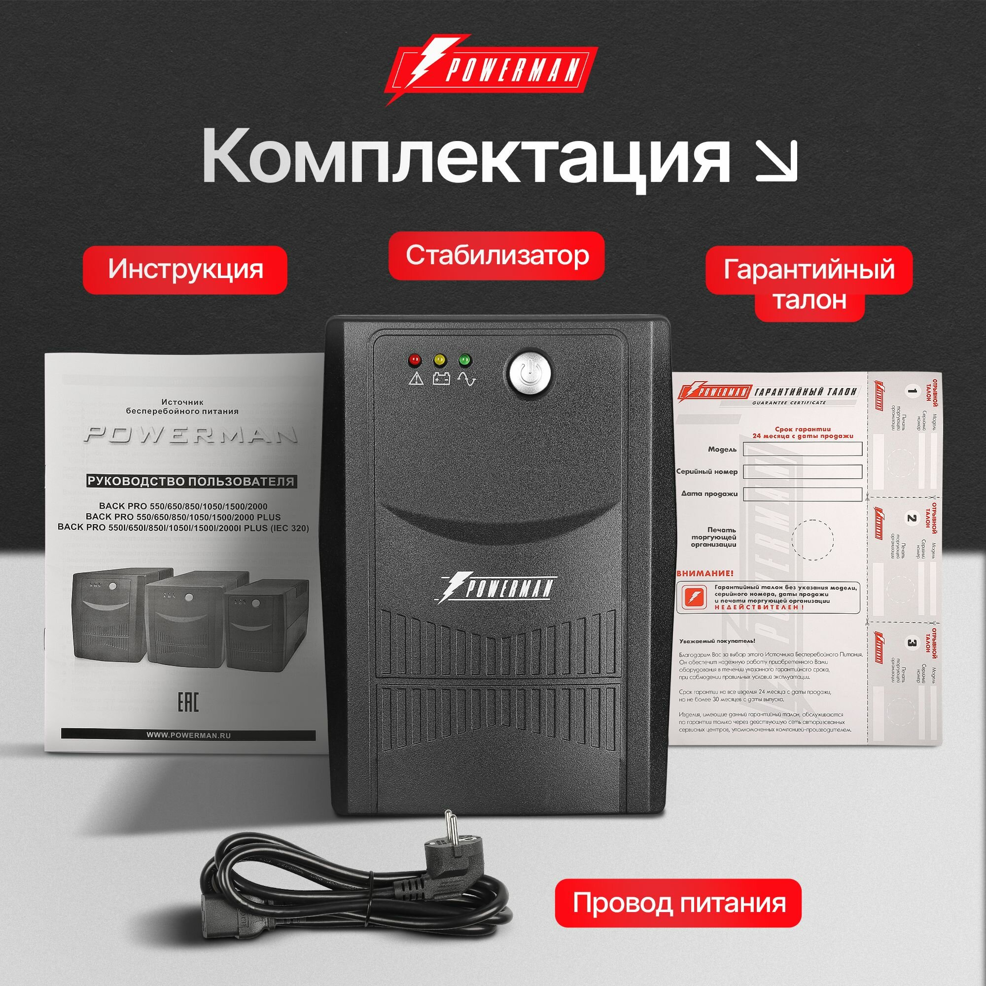 ИБП бесперебойник для компьютера, роутера Powerman UPS BackPro 1500/UPS+AVR