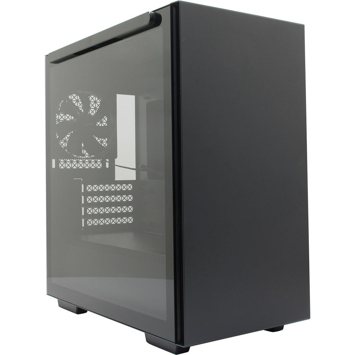 | Минусы: | Количество разъёмов на передней панели, необходимость выламывать заглушки для видеокарты, один встроенный вентилятор |