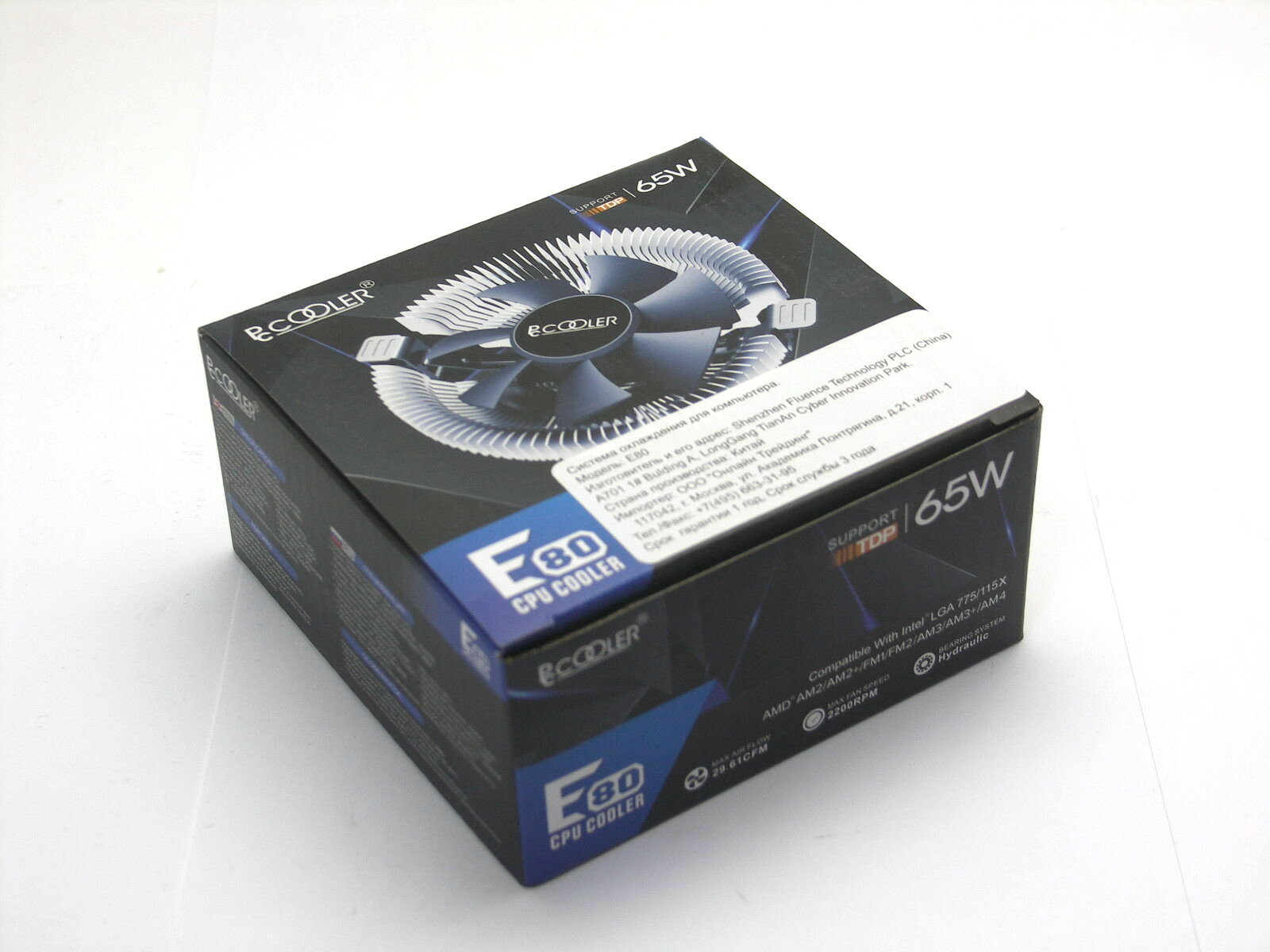 PCCooler E80 S775/115X/AM2/2+/AM3/3+/AM4/FM1/FM2/754/939/940 (72 шт/кор, TDP 65W, вент-р 80мм, 2200RPM, 22dBa) Retail Color Box