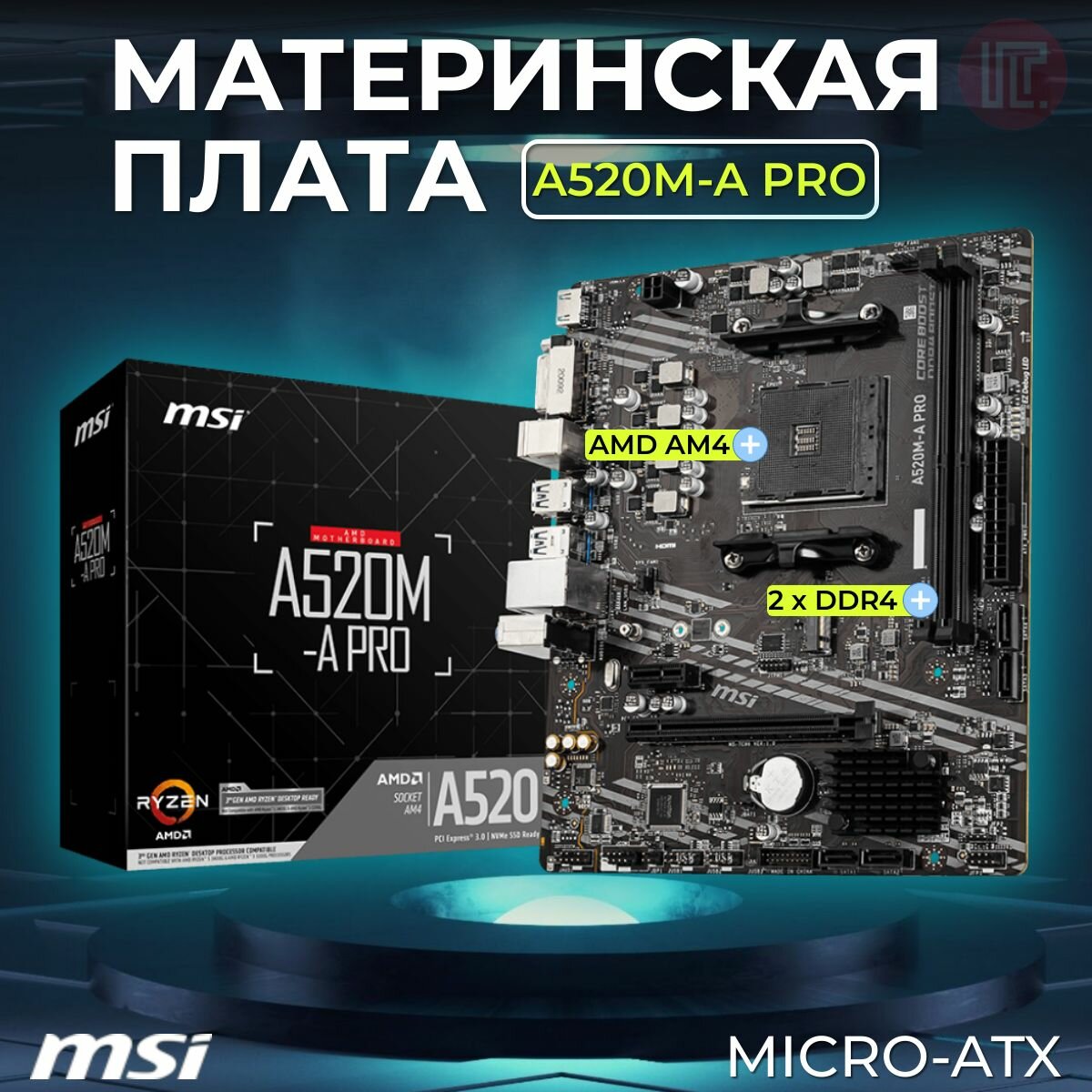 Материнская плата MSI A520M-A PRO Socket AM4 AMD A520 2xDDR4 1xPCI-E 16x 1xPCI-E 1x 4 mATX Retail