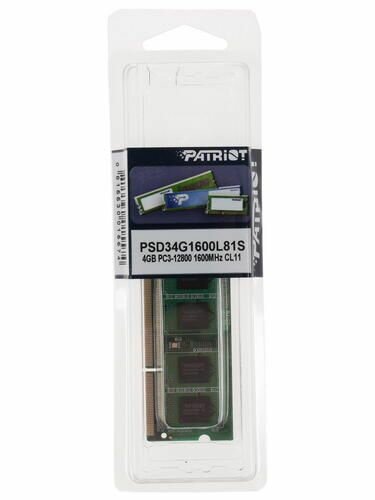 Оперативная память Patriot PSD34G1600L81S DDR3L - 4ГБ 1600, SO-DIMM, Ret