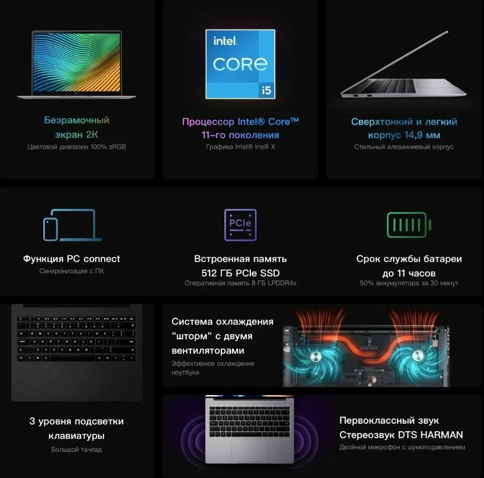 Ноутбук Realme Book серый i5 1135G7/8ГБ/512ГБ SSD/Intel Iris Xe/14" IPS QHD/Win11