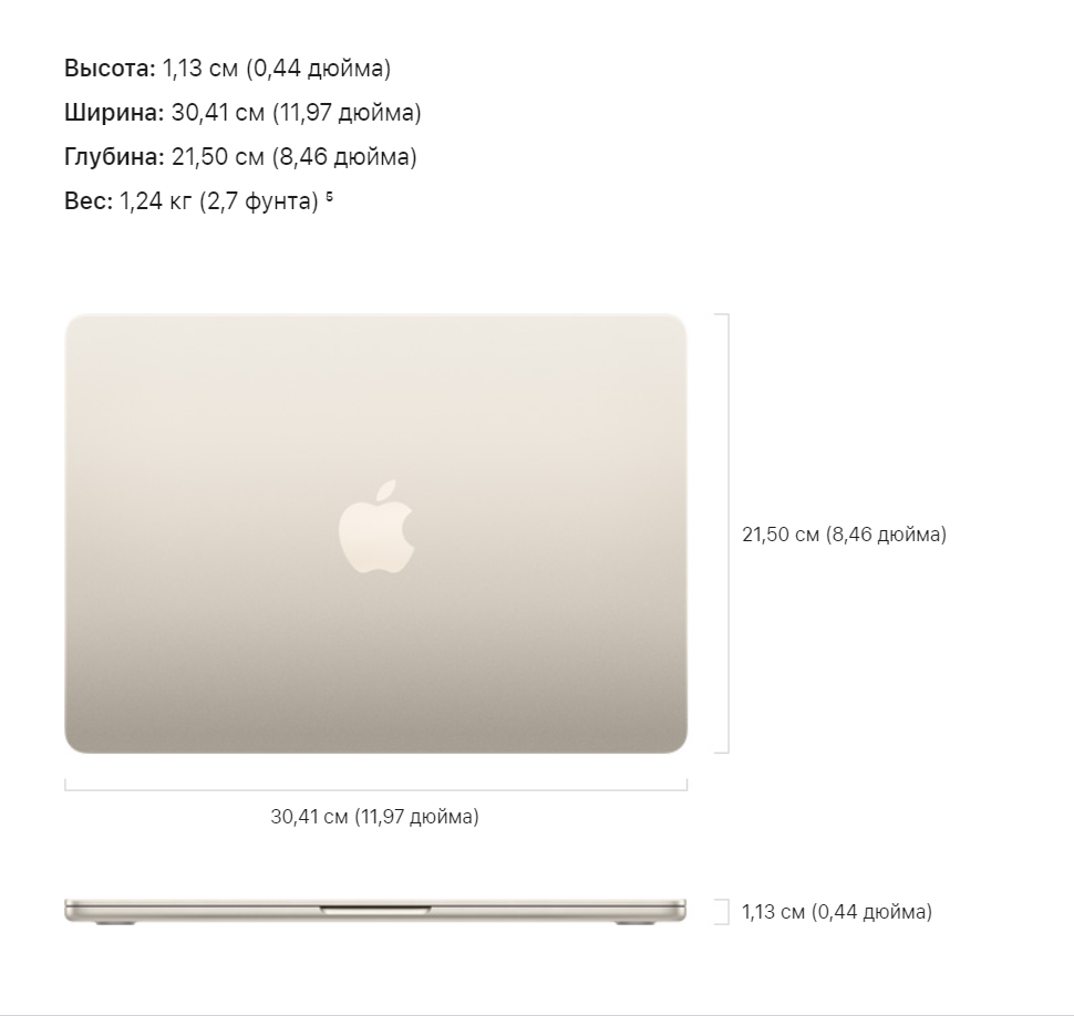 15.3" Ноутбук Apple MacBook Air 15 M3 2024 8+256 ГБ, сияющая звезда