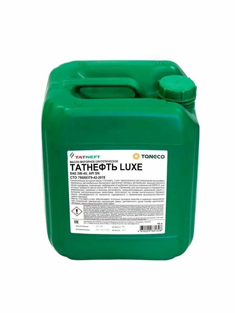 Купить TATNEFT 4650229681328 Масо моторное синтетическое Татнефть Luxe SAE 5W-40 канистра 10 , SNCF