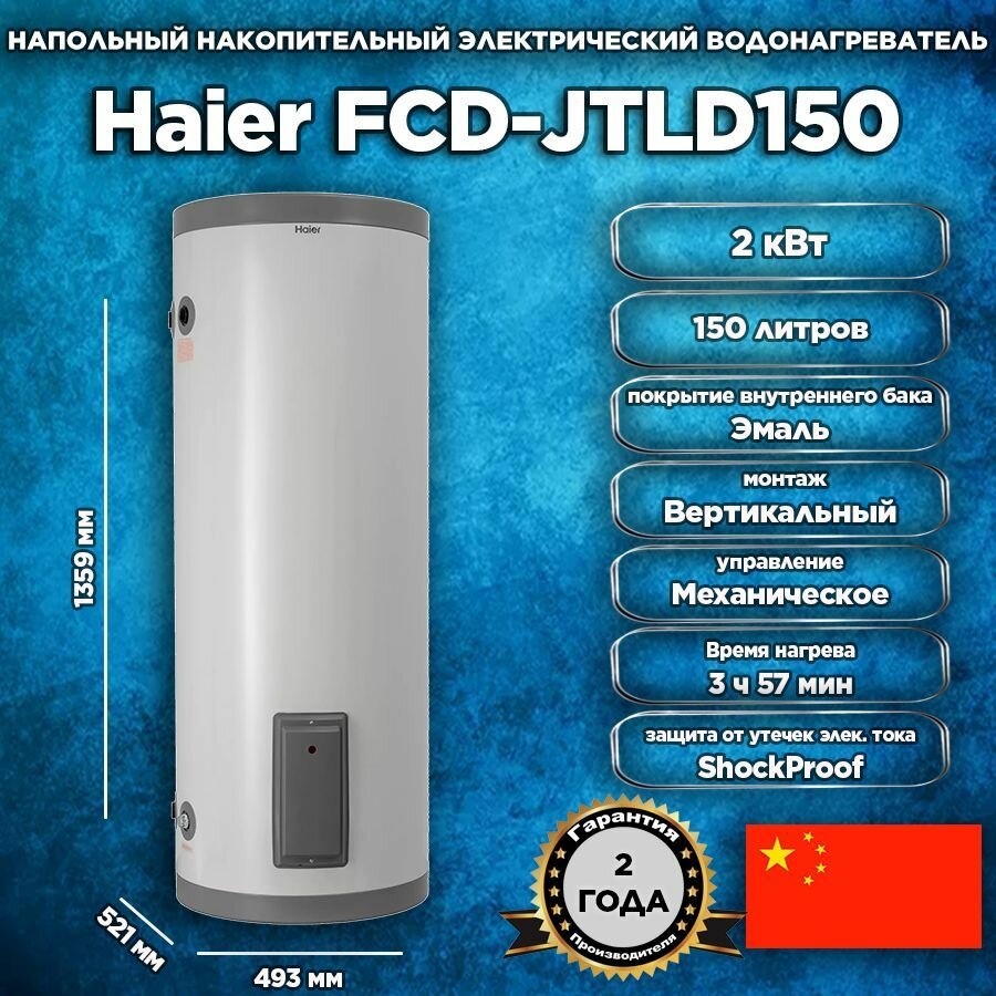 Водонагреватель HAIER FCD-JTLD150 (вер/кругл/эмаль.бак/напольный) 2 КВт