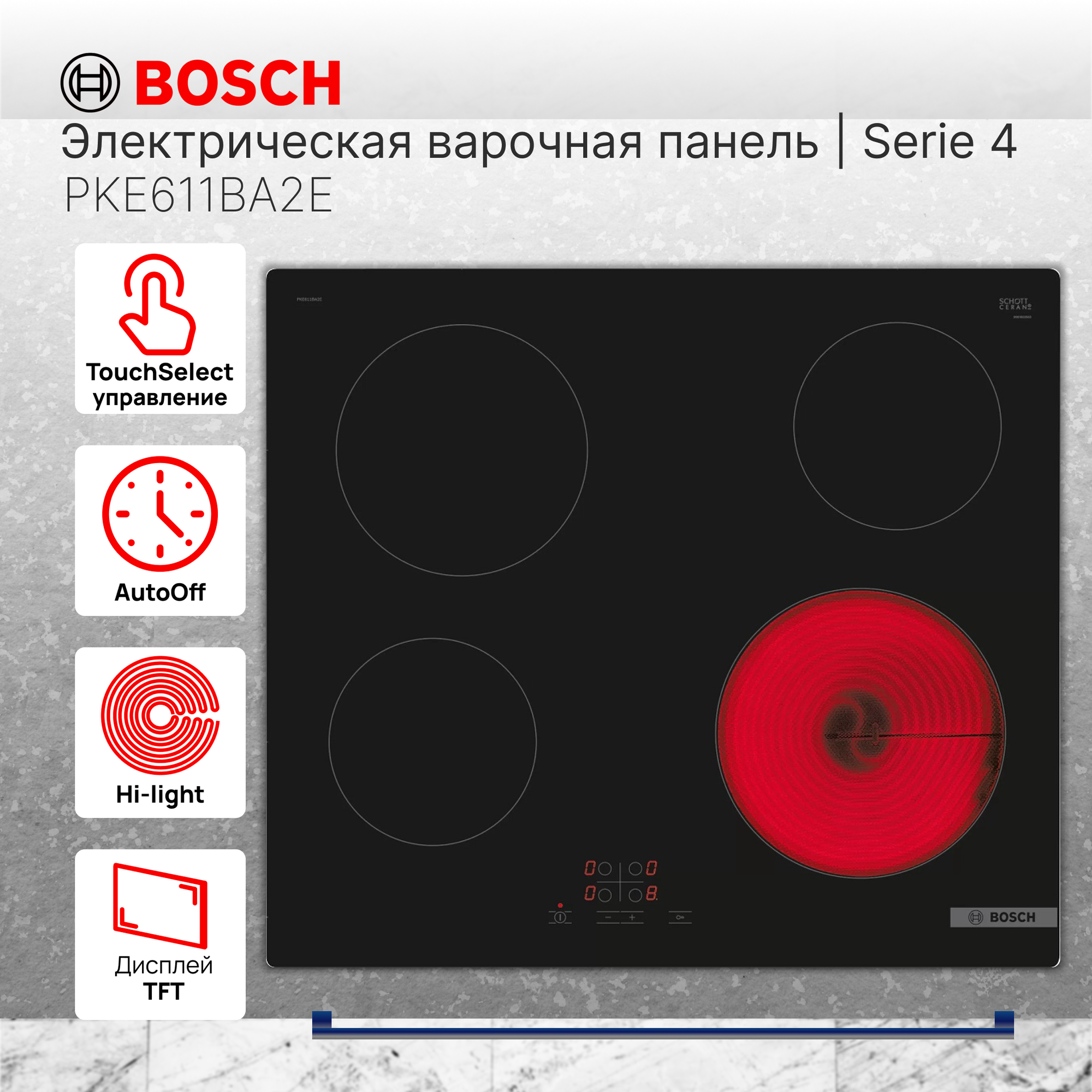 Варочная панель электрическая Bosch PKE611BA2E, конфорок - 4 шт, стеклокерамика, черный