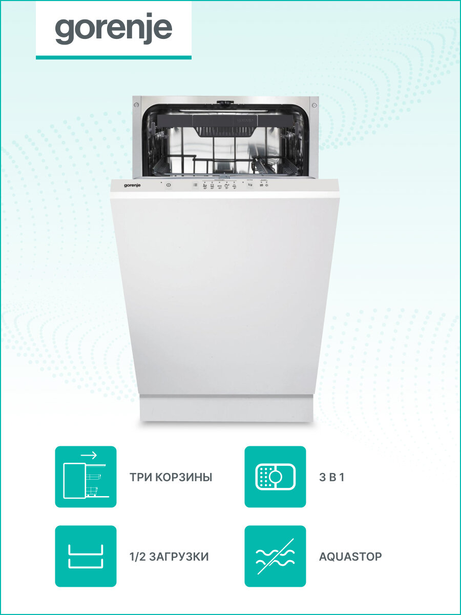 Посудомоечная машина встраиваемая Gorenje GV520E10S, 45 см