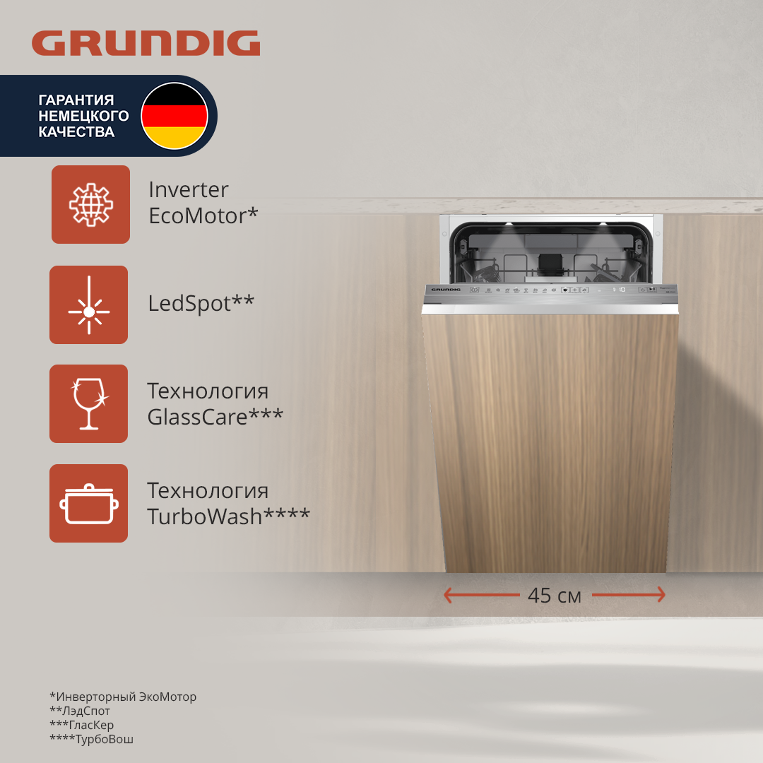 Встраиваемая посудомоечная машина Grundig GSVP4151Q, 45 см, белый интересное: