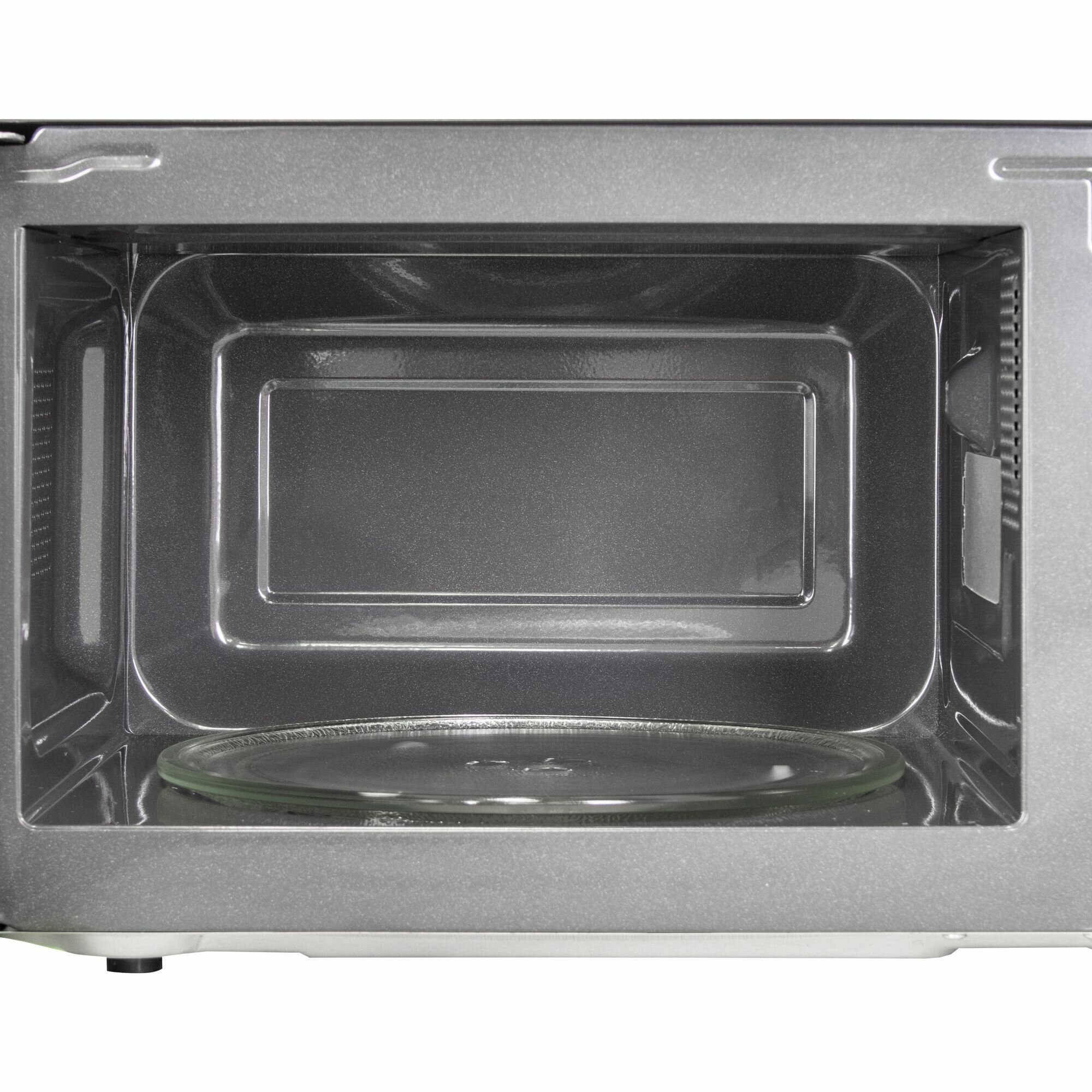 Стильная и компактная микроволновка. Со всеми функциями справляется на отлично. Переключатели выполнены в виде поворотных регуляторов, что затрудняет установку времени с точностью до секунды.