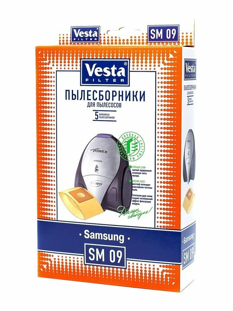 Vesta filter SM09 комплект мешков-пылесборников бумажных (5шт) для пылесоса Samsung
