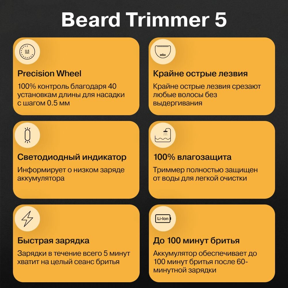 | Отзыв: | Отличный триммер. Брал на замену своего Braun cruzer5. Со своими функциями справляется. Удобный в использовании. Лёгкий. Качество сборки хорошее. Ничего не люфтит, не гремит. |