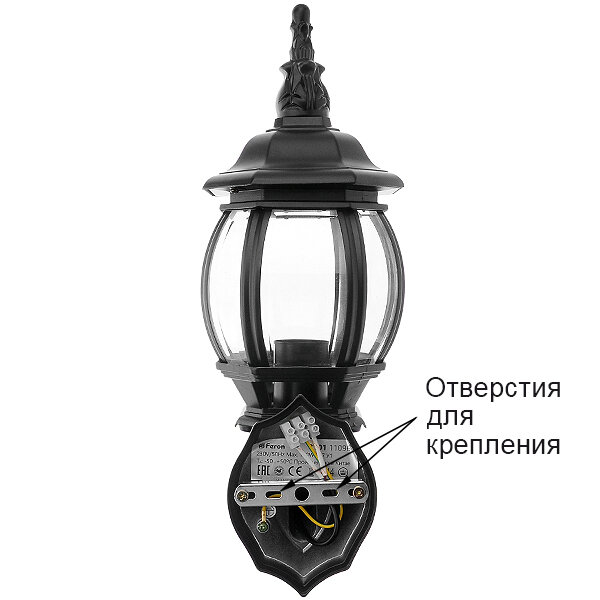 Уличный настенный светильник Feron 8101 11096, E27, 100 Вт, цвет арматуры: черный, цвет плафона бесцветный