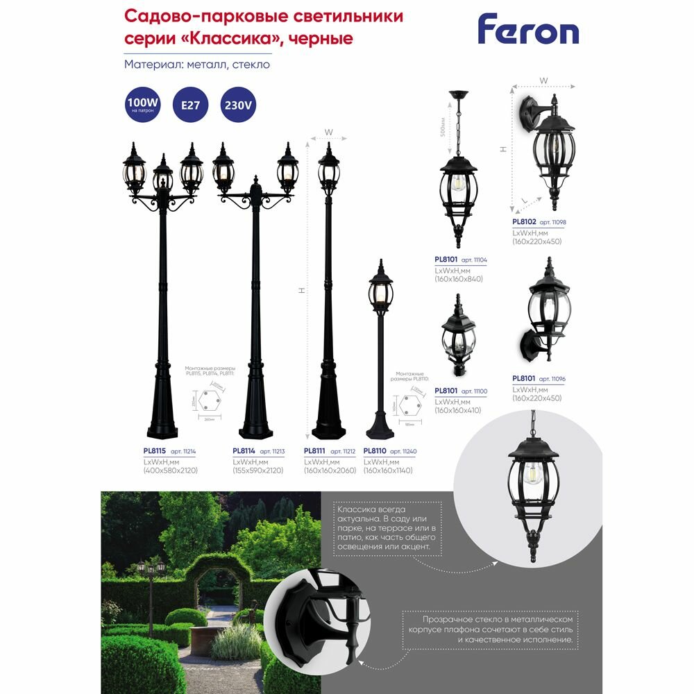 Feron 8101 Светильник садово-парковый, серии «Классика» (НБУ) 1*100W, E27, 230V, IP44, 11096