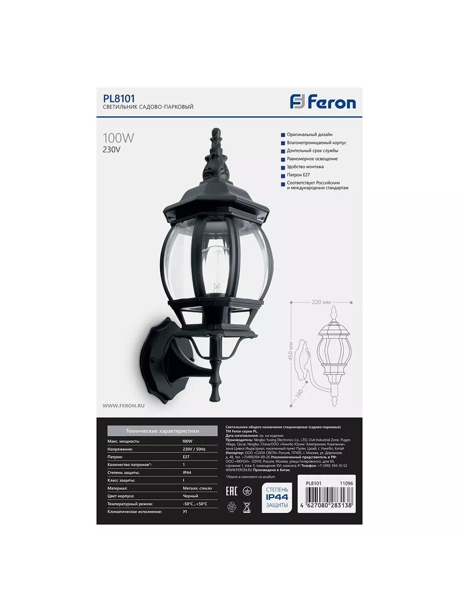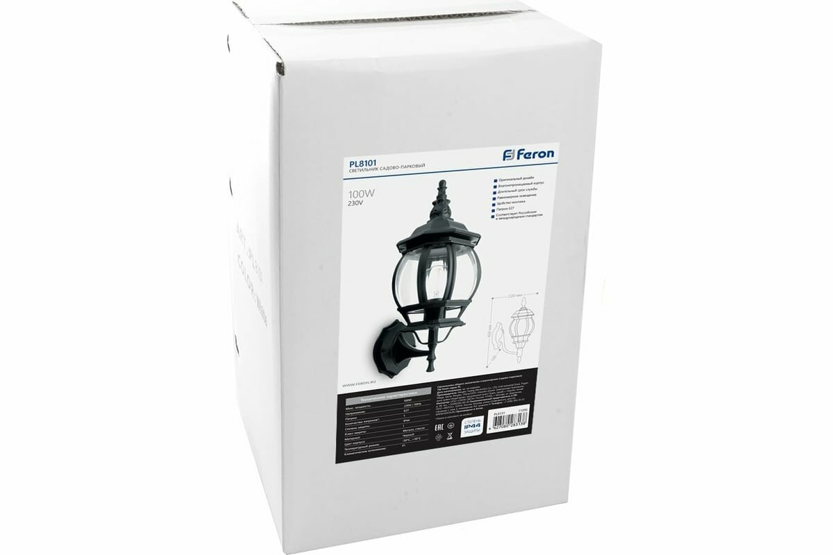 Feron Уличный настенный светильник 8101 11096, E27, 100 Вт, цвет арматуры: черный, цвет плафона бесцветный, 1 шт.