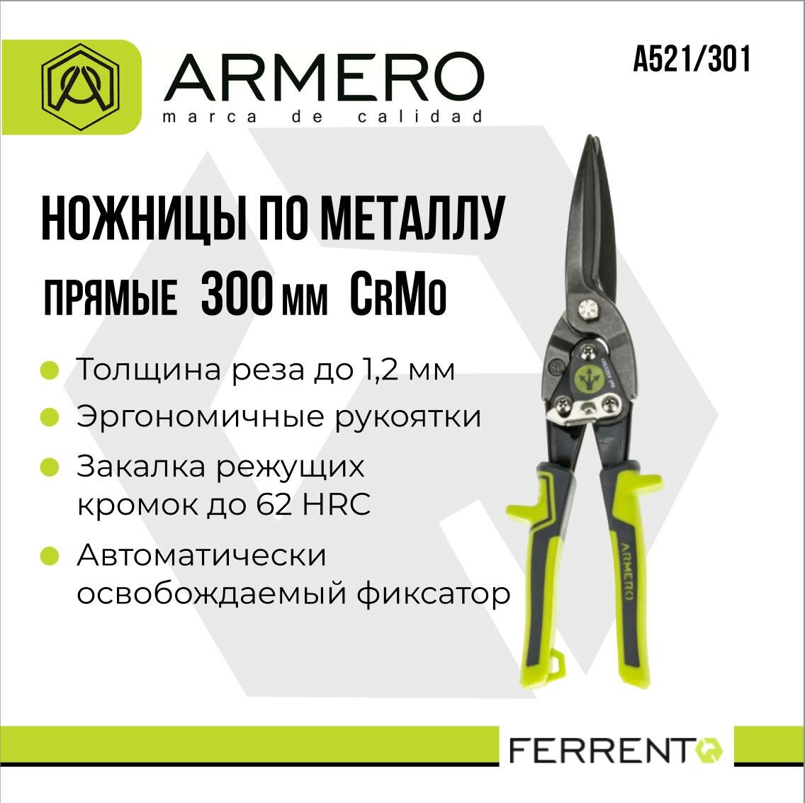 Ножницы по металлу Armero А521/301, 300мм, прямые, CrMo сталь