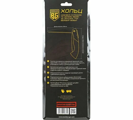 Ножовка складная по дереву «хольц» 180мм, 3D заточка, 7TPI, BERGER BG1847