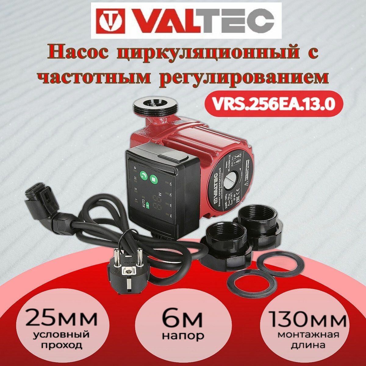 Насос циркуляционный VALTEC RS 25/6EA-130 с гайками, электронный преобразов. частоты VRS.256EA.13.0