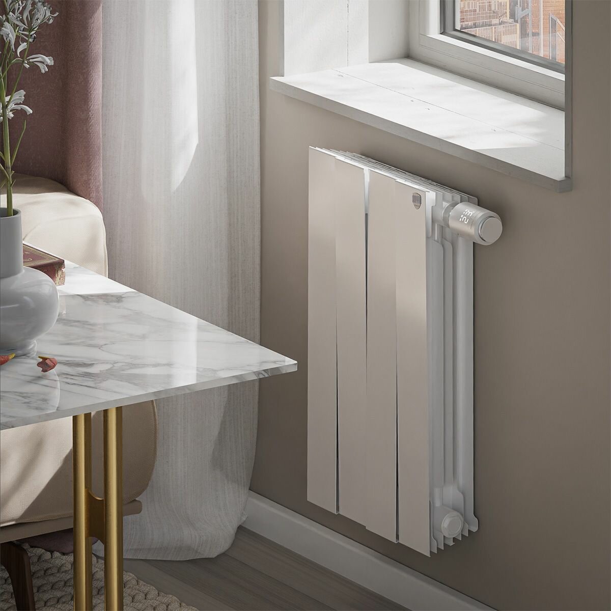 Биметаллический секционный радиатор отопления Royal Thermo Pianoforte Silver Satin 500 / 4 секции нижнее правое подключение