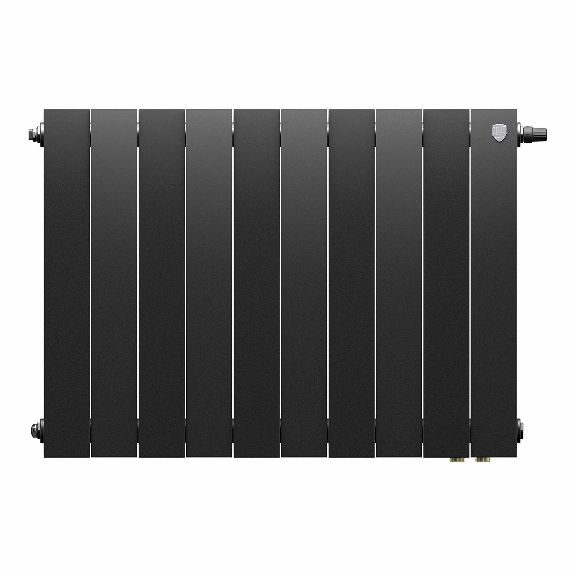 Радиатор биметаллический секционный Royal Thermo PianoForte 500 /Noir Sable черный - 10 секций нижнее подключение правое VDR (RTPNNSVD50010)