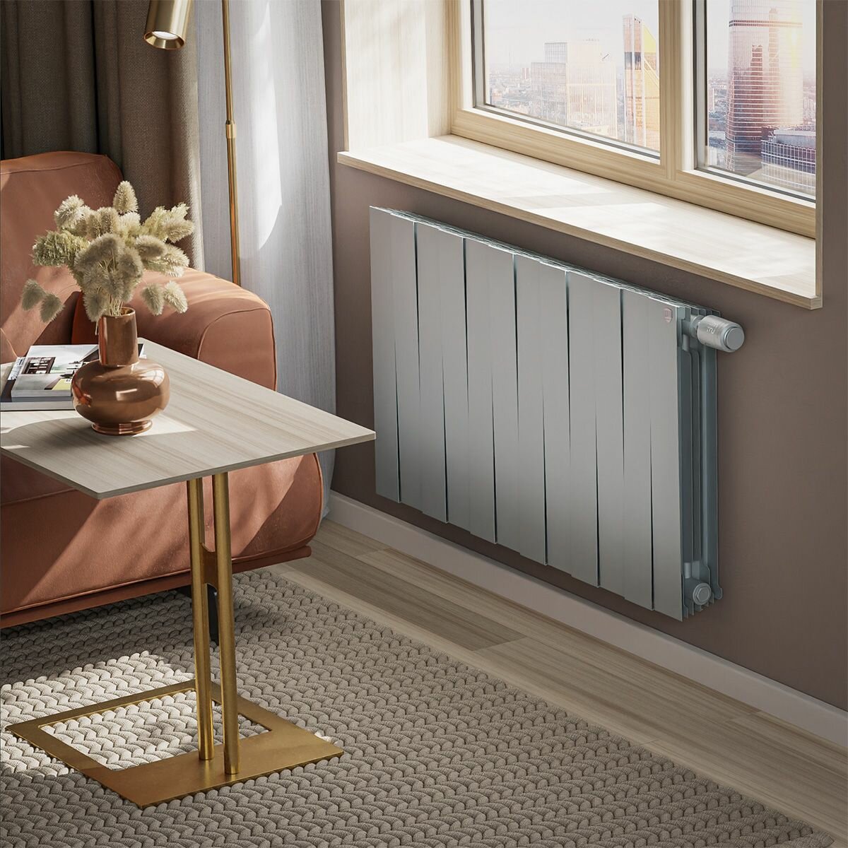 Биметаллический секционный радиатор отопления Royal Thermo Pianoforte Silver Satin 500 / 4 секции нижнее правое подключение