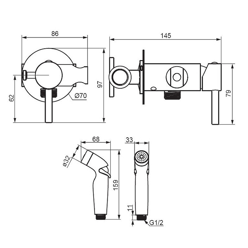 Гигиенический душ со смесителем Damixa Option 211000000 скрытого монтажа