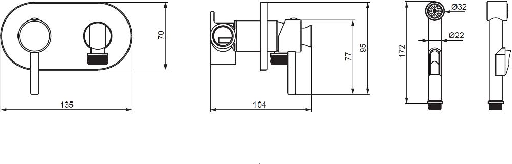 Гигиенический душ со смесителем Damixa Option 211000000 скрытого монтажа