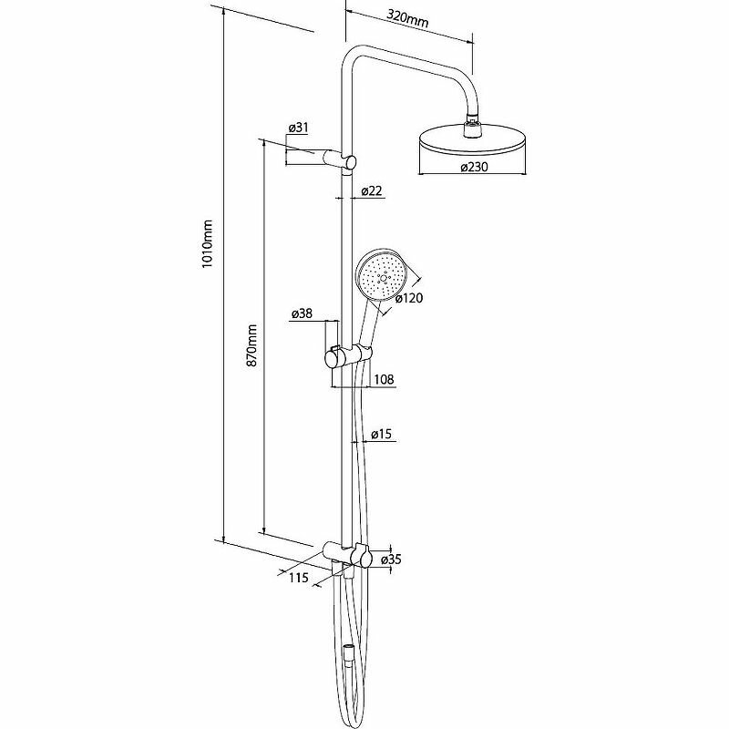 DX977700200 Origin Bit душ. система: верхний душ 230мм, ручн.душ 120мм, 1 режим, штанга 1010мм, Бел