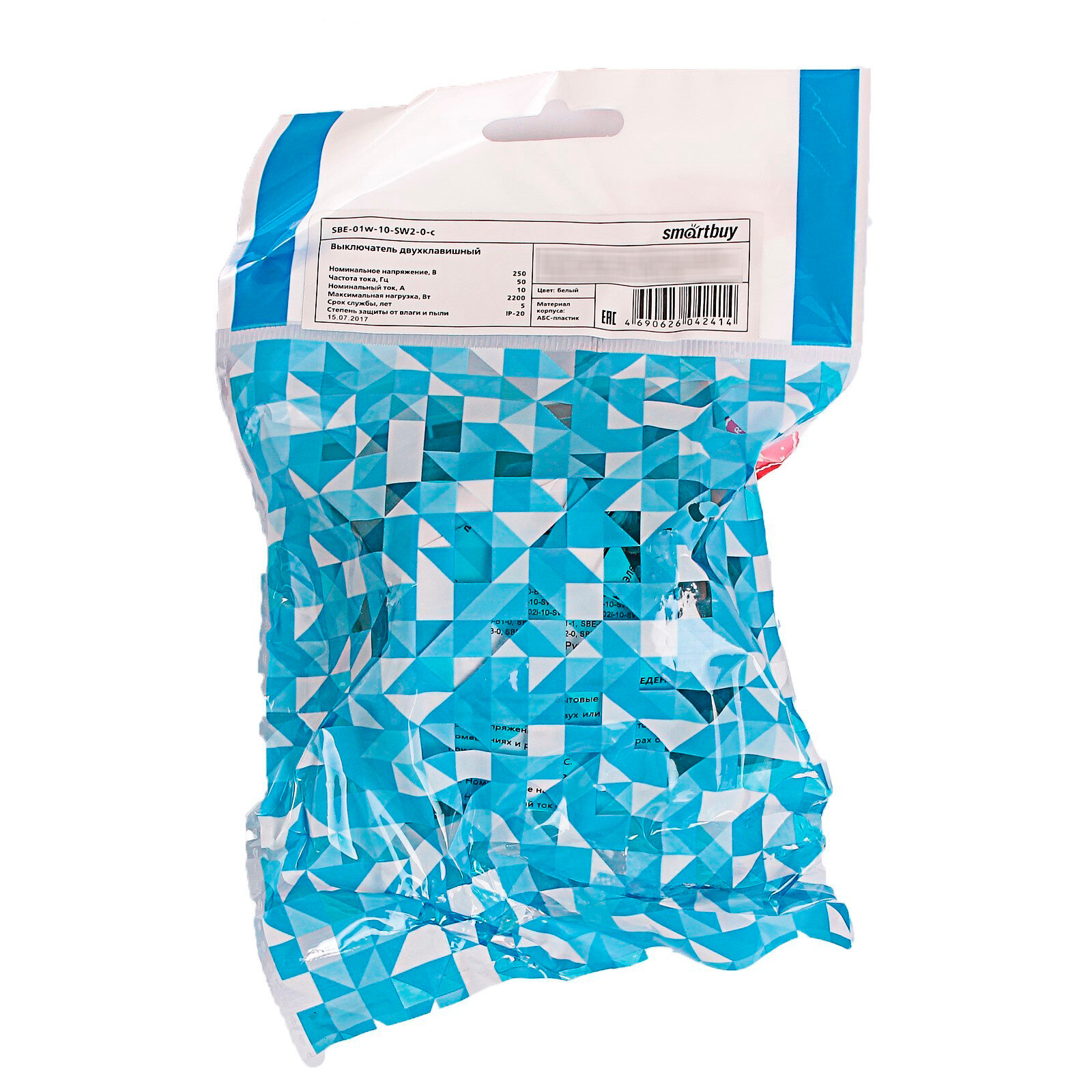 Выключатель Smartbuy 2-клавишный 10А, керамика "Венера" (SBE-01w-10-SW2-0-c), белый