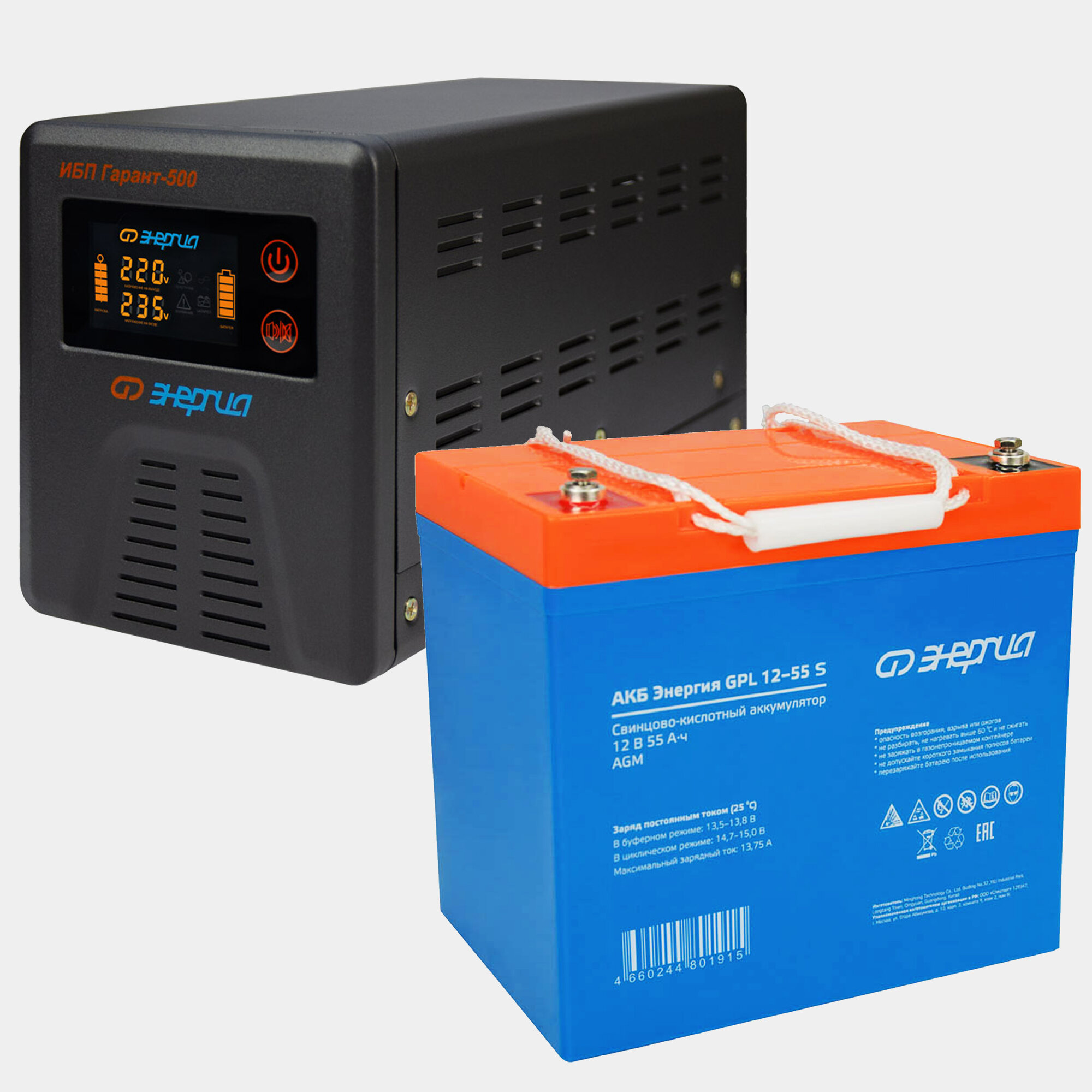 Купить ИБП для котла Энергия Гарант 500 + Аккумулятор Энергия S 12-55 Ач, 300Вт