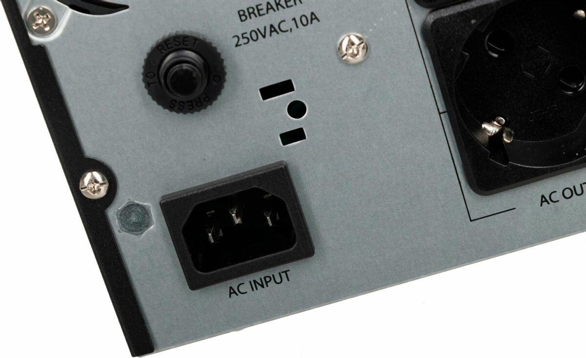 | Плюсы: | - Качественная система охлаждения. - Отличная и подробная система индикации в виде яркого дисплея. - Удобные кнопки управления. - Наличие интерфейсов и возможность привязки через них ПК и ИБП. - Количество разъемов. - Большая мощность (способность держать высокую нагрузку). |