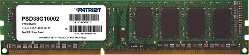 Купить Память DIMM DDR3 PC3-12800 Patriot PSD38G16002H, 8Гб, 1.5 В Кол-во модулей: 1, частота: 1600 МГц
