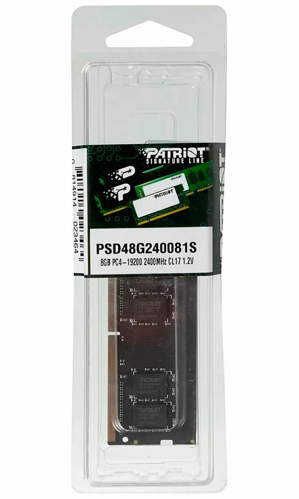 Модуль оперативной памяти Patriot Модуль оперативной памяти SO-DIMM 8ГБ DDR4 SDRAM Patriot PSD48G240081S (PC19200, 2400МГц, CL17) (ret)