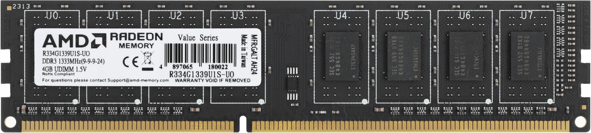 Оперативная память AMD Value 4 ГБ DDR3 1333 МГц DIMM CL9 R334G1339U1S-UO