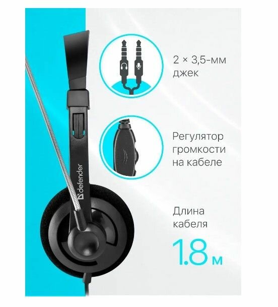 Наушники с микрофоном Defender HN-104 Aura накладные, компьютерная гарнитура, кабель 1.8 метра
