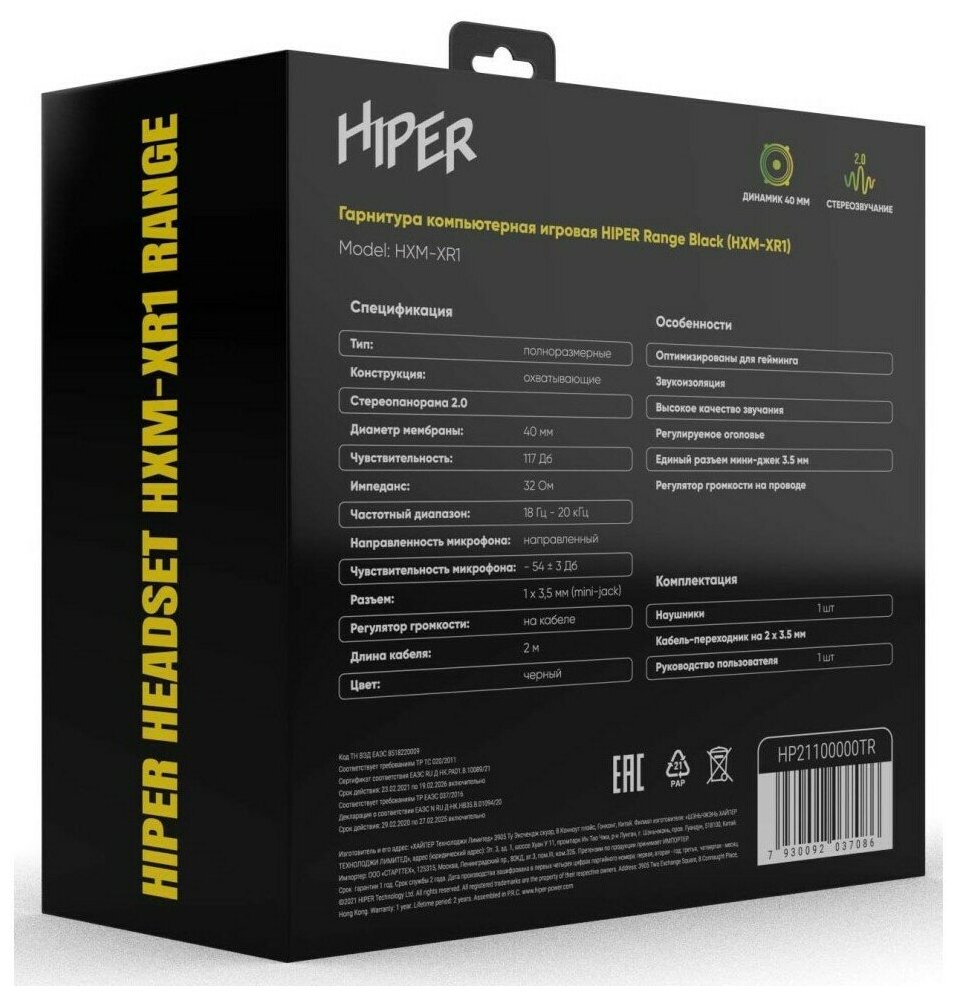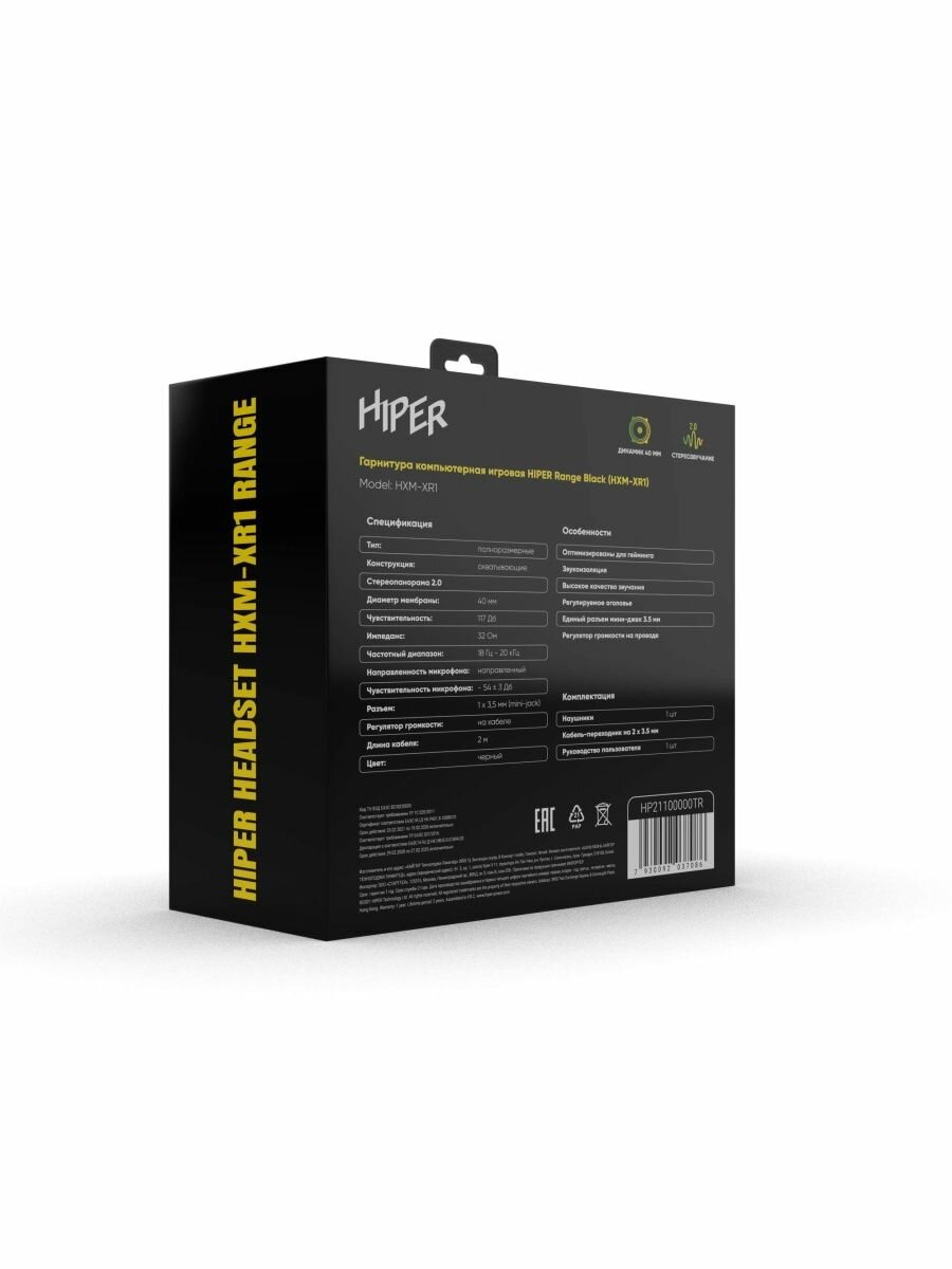 Игровая гарнитура HIPER Range Black (HXM-XR1)