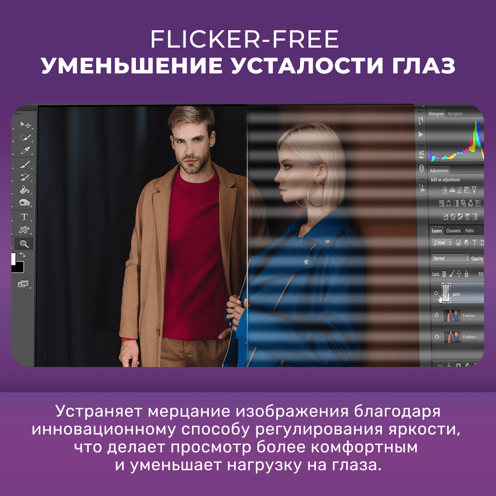 | Особенности | подсветка без мерцания (Flicker-Free) / регулировка по высоте / встроенные колонки |