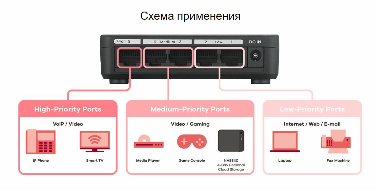 Коммутатор ZYXEL GS-105S v2, 5 портов 1000 Мбит/с, настольный, c приоритетными портами