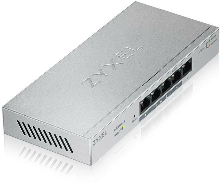 ZYXEL GS1200-5HPV2-EU0101F Smart PoE+ коммутатор GS1200-5HP v2, 5xGE 4xPoE+ , настольный, бесшумный, с поддержкой VLAN, IGMP, QoS и Link Aggregation, бюджет PoE 60 Вт