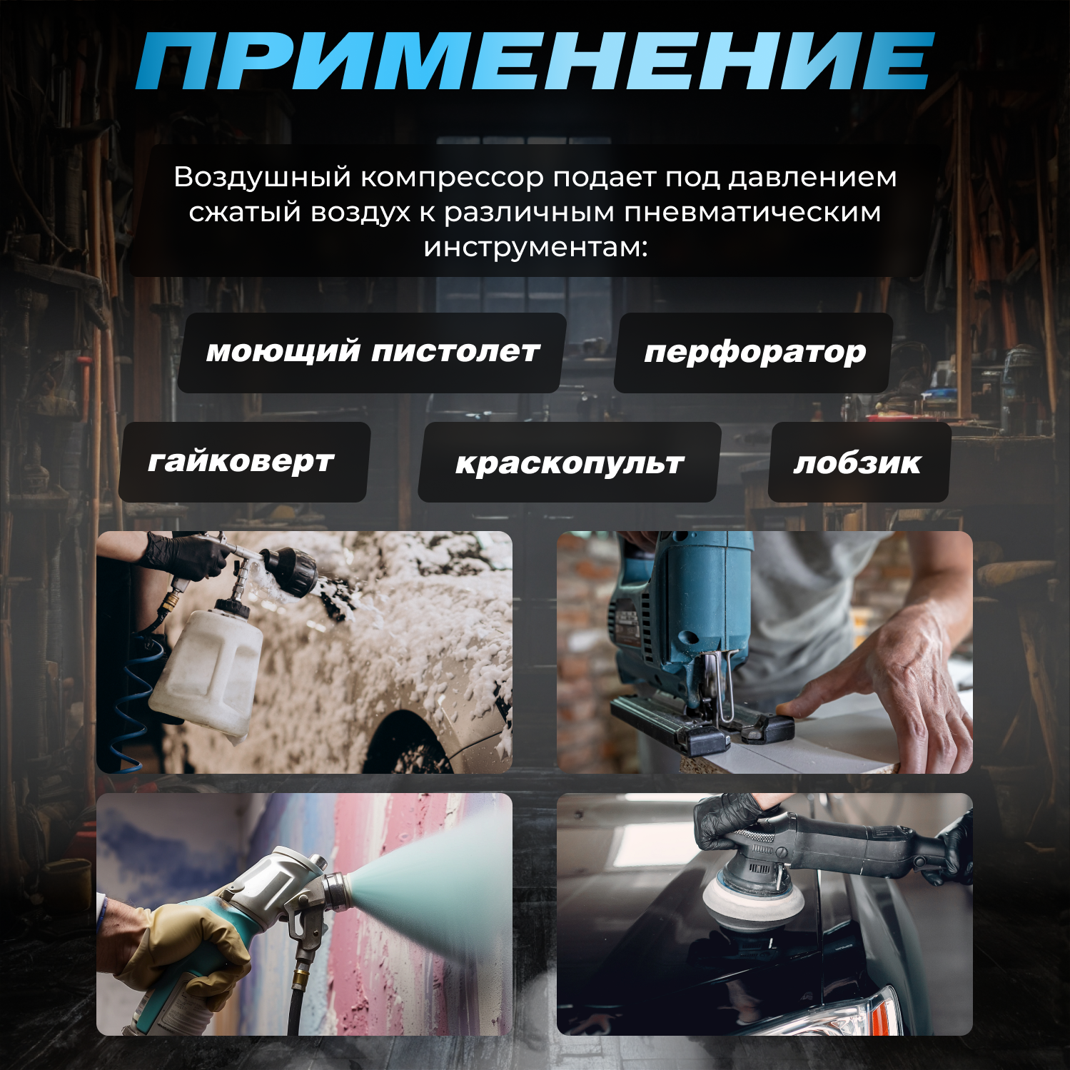 В целом, с подходящим по расходу воздуха инструментом, отличный компрессор.