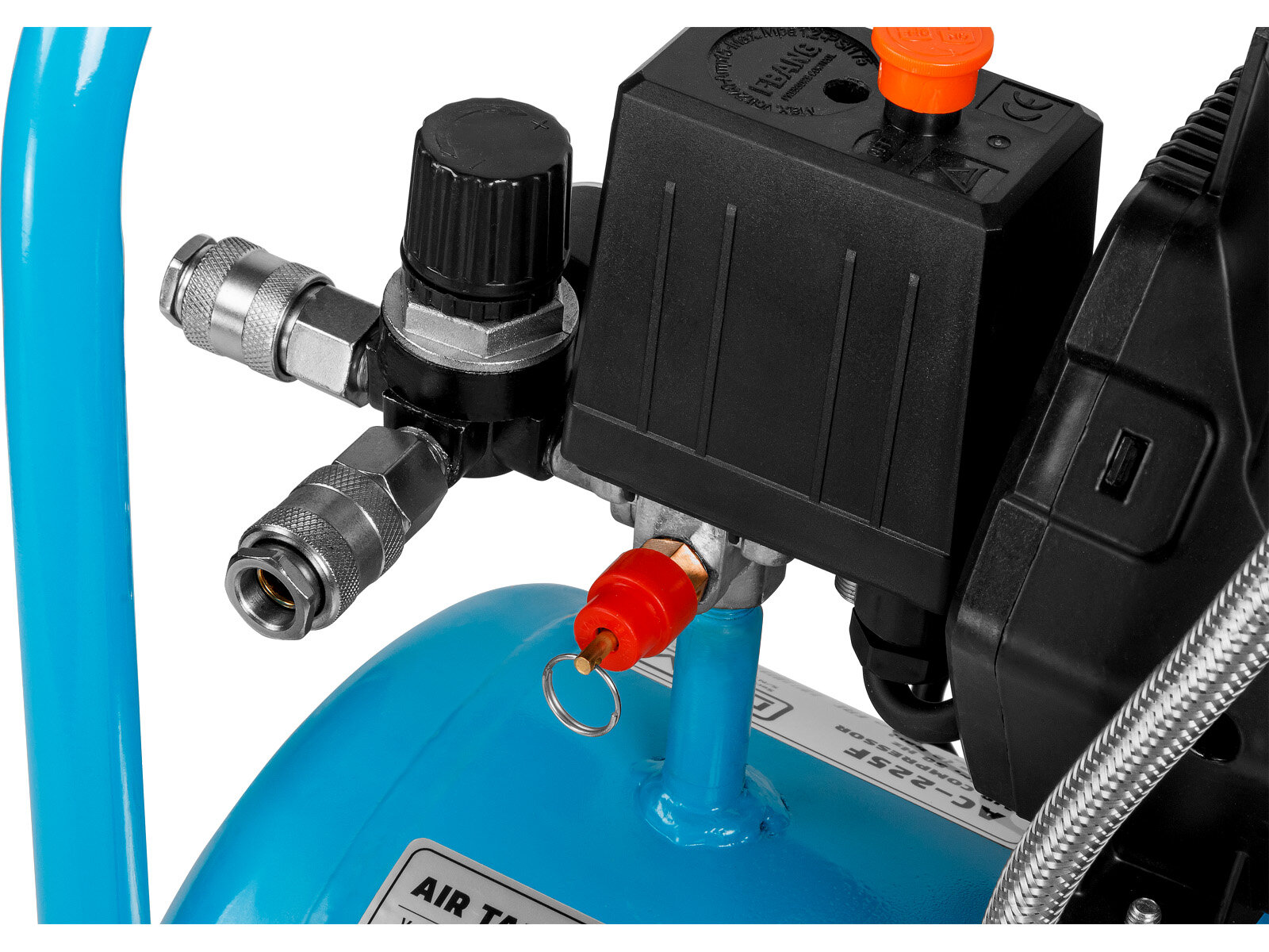 Клапан слива конденсата немного сбоку а не в низу ресивера!, отсутствует на ресивере штуцер/заглушка для подключения доп. ресивера минуя редуктор давления. Но это все мелочи.