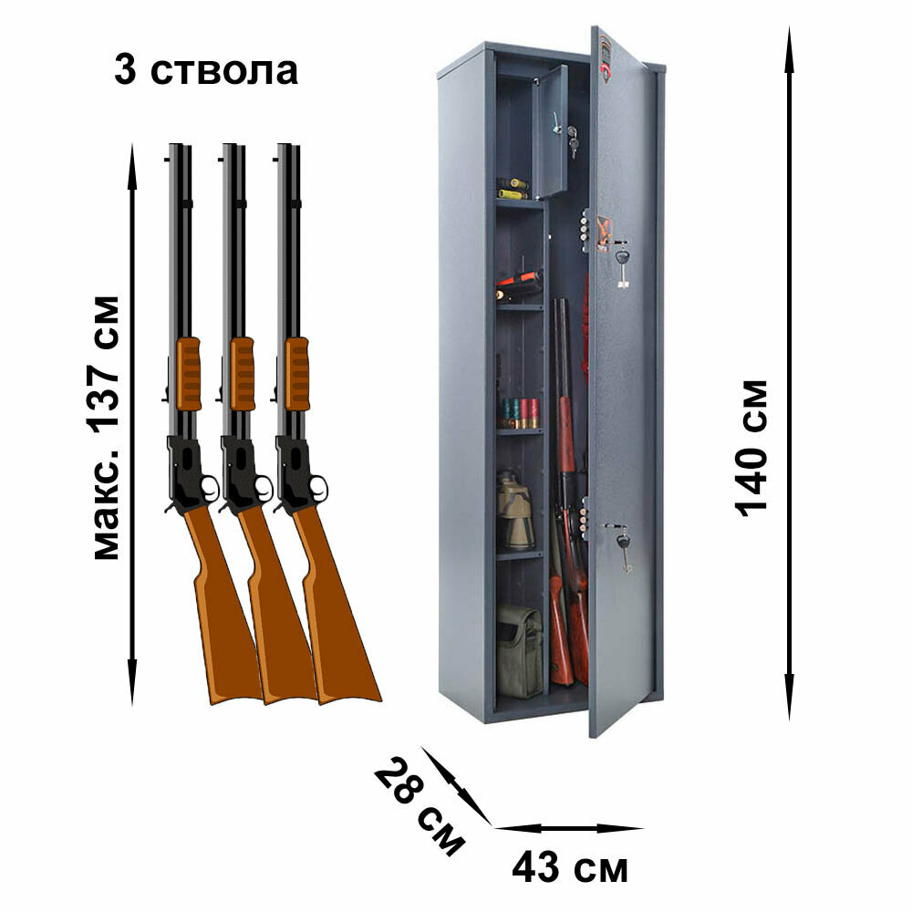 Оружейный Сейф Aiko Чирок 1443Kl, 2 Замка, 3 Полки, 1400x430x280 мм интересное: