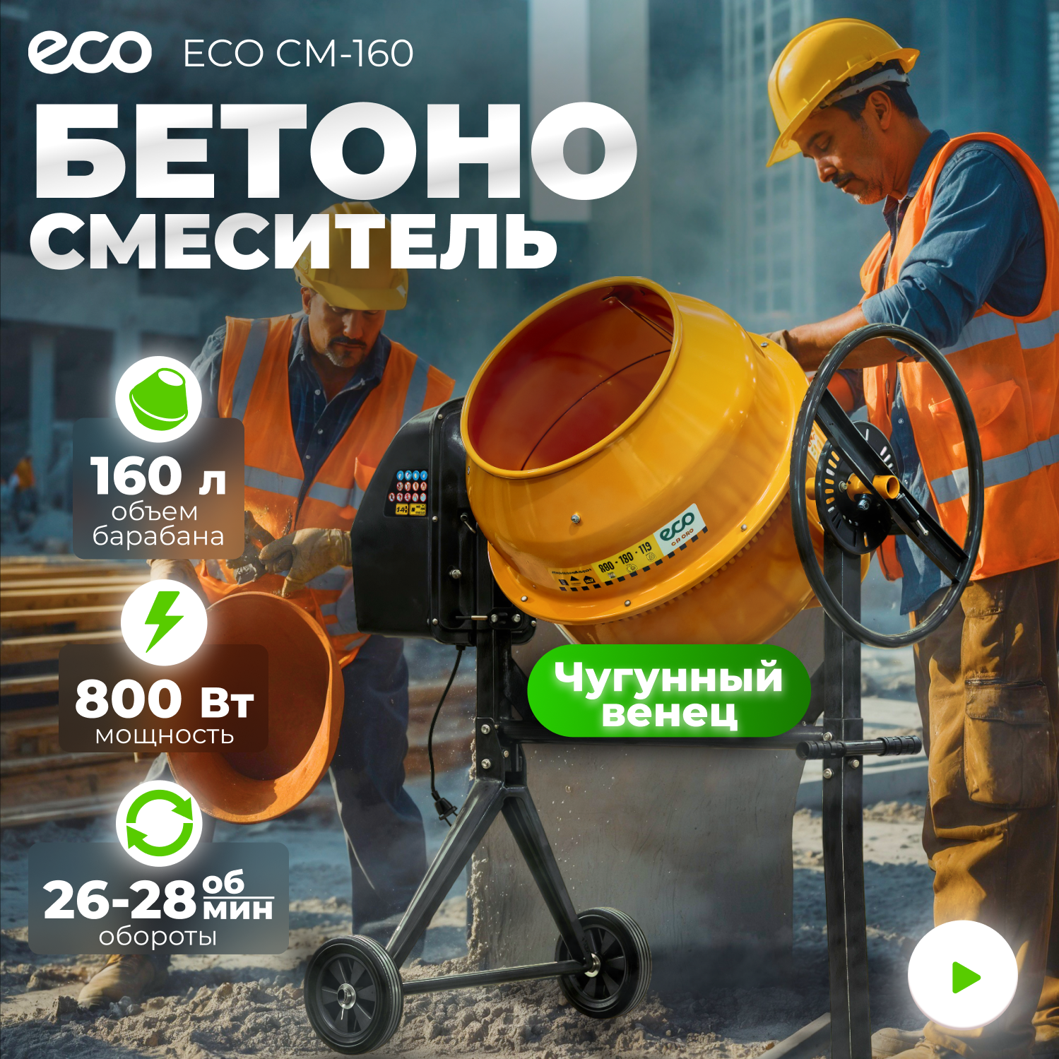 Ниже Вы можете прочитать отзывы на Eco Бетоносмеситель 160 л CM-160 EC3410-5, ознакомится с подробными характеристиками, посмотреть интересные обзоры и фотографии на Eco Бетоносмеситель 160 л CM-160 EC3410-5.