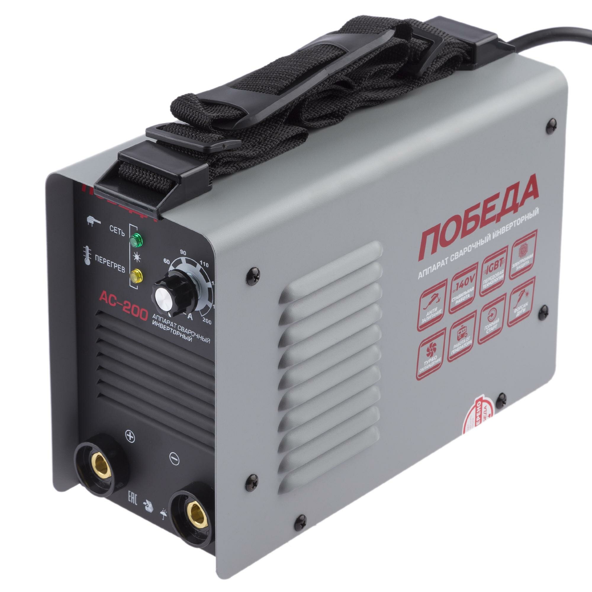 Сварочный аппарат инверторный победа АС 200, 5,0кВт, сварочный ток 200А